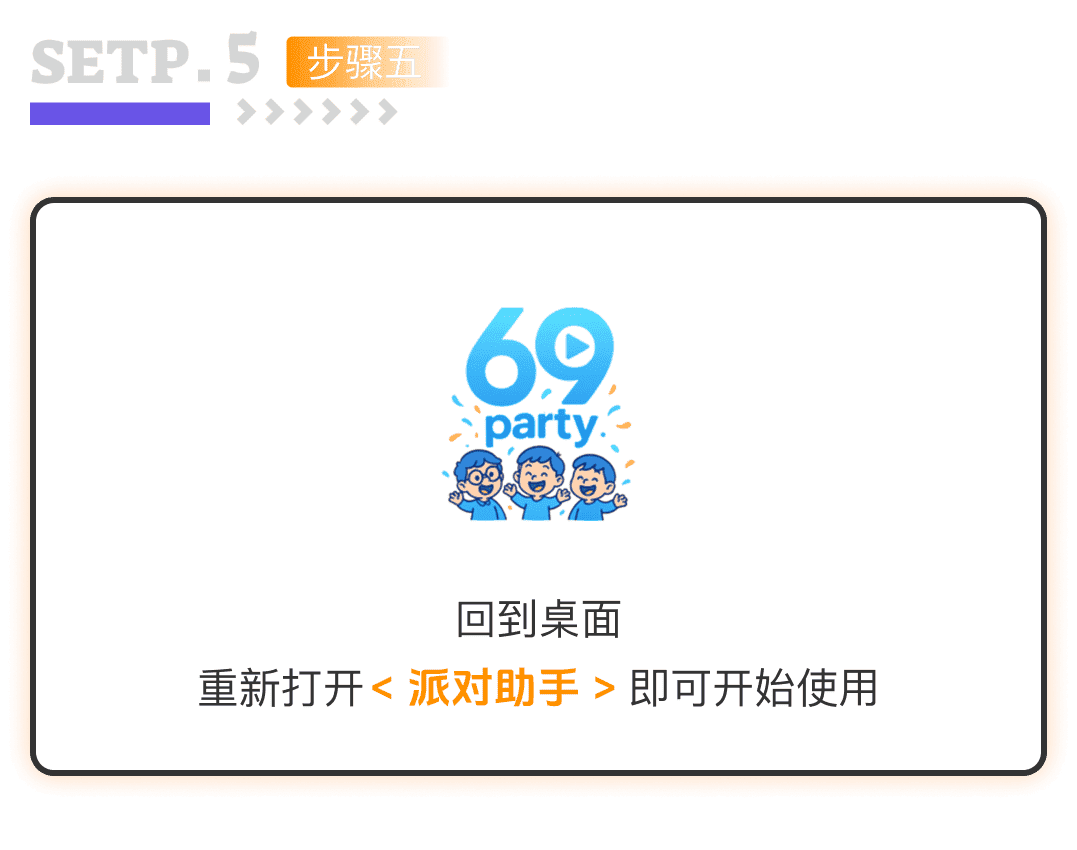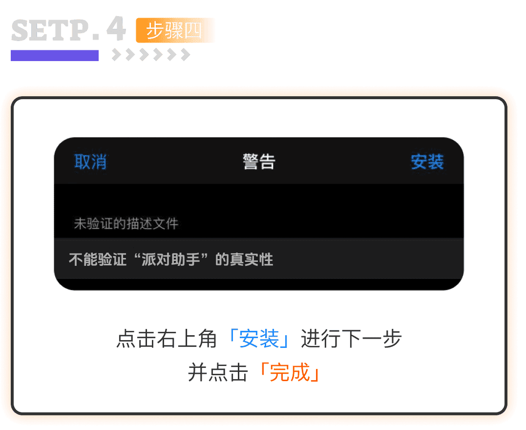提示:由于ios的特殊性,防止app后续打不开,我们特意推出派对助手!